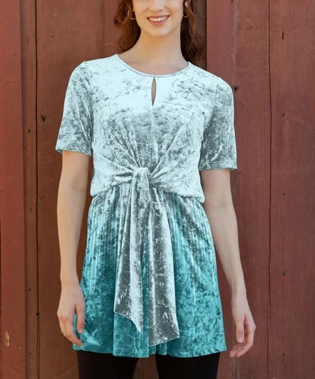 This soft, velvet top features a wide tie-waist, and a keyhole at the neckline adds a pop of intrigue.