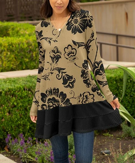 Greet the day in chic style wearing this boldly patterned hoodie that flows to a ruffled hemline. A v-neck gives you space to add a statement necklace.