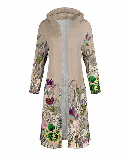 Embrace an expressive sense of style with this sweeping open-front duster featuring an eye-catching pattern, a roomy hood and practical patch pockets for your on-the-go essentials.