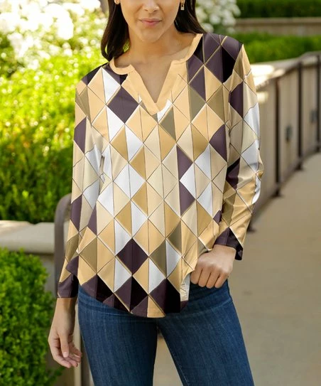 With three-quarter sleeves, a relaxed fit and a stylish print, this elegant notch-neck top is an everyday essential.
