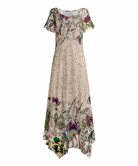 Glide through your weekend with bohemian flair in this swingy maxi dress underscored with a handkerchief hem.