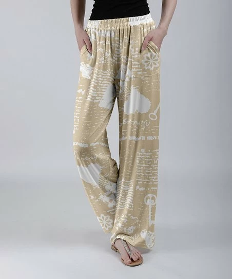 A unique print and elastic waist band complete these flowy wide-leg pants. Crafted with convenient pockets from a stretch-friendly fabric.