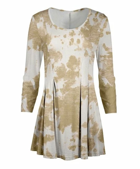 A unique pattern, stretch-enhanced fabric and three-quarter sleeves come together to create a comfortable and stylish tunic option.