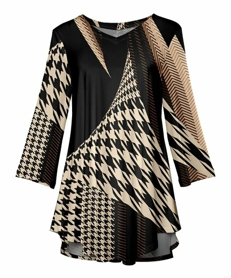 Enliven your daily look with the artsy print of this stretch-blend tunic that’s designed to coast smoothly over bottom layers with a flared silhouette and flattering curved hemline.