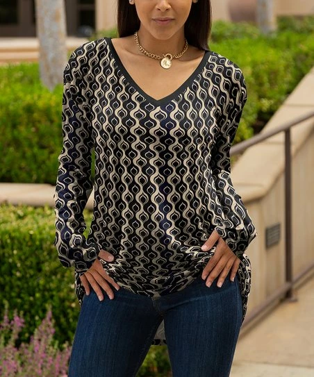 Give your wardrobe classics a boost with this long-sleeve top made with stretch-infused material and fashioned with a v-neckline.