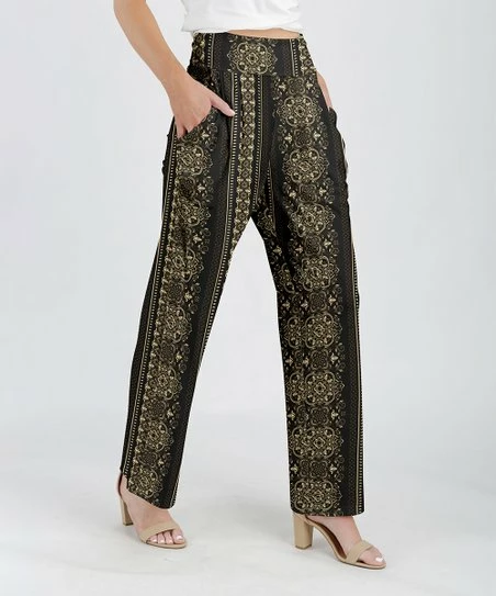 Straight-leg pants made with stretch-infused material and a wide-waistband. Built-in pockets for added functionality.