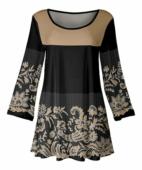 Lily | Black & Beige Paisley Scoop Neck Tunic – Plus