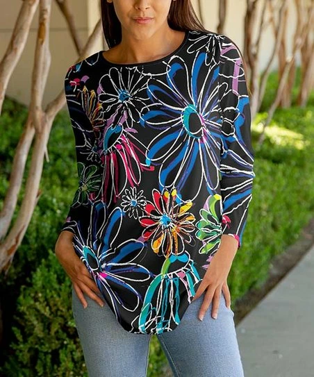 This patterned long-sleeve tunic is made of stretch-enhanced material.