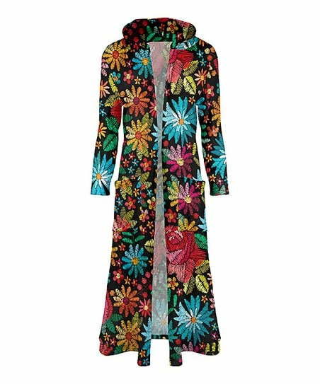 Slip on this gracefully flowy long duster to create a stately layered look. A hood adds extra snug coverage when needed and side pockets give you a spot to stash little essentials.