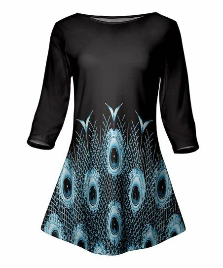 Bolster your wardrobe basics with this breezy tunic sporting an eye-catching print and sporty three-quarter sleeves.