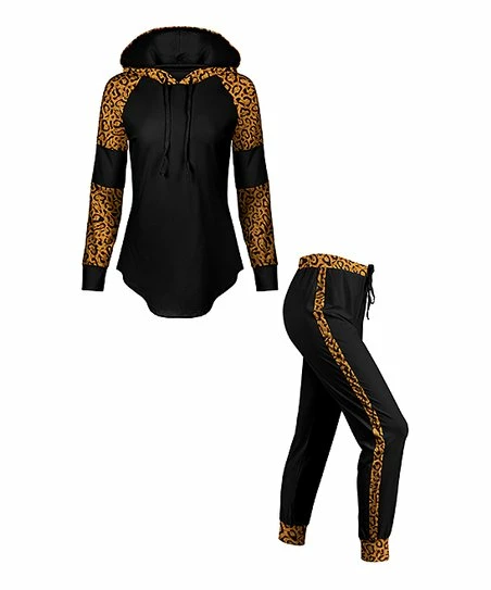 Rock a sporty-sweet look in this comfy, coordinating set featuring a raglan hoodie and side-stripe leggings both boasting a fun print.