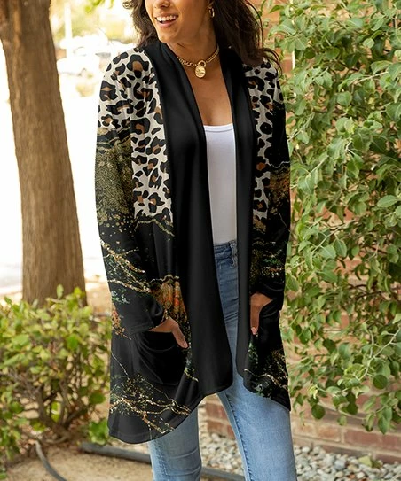 Lily | Black & Brown Leopard Pocket Open Cardigan – Women