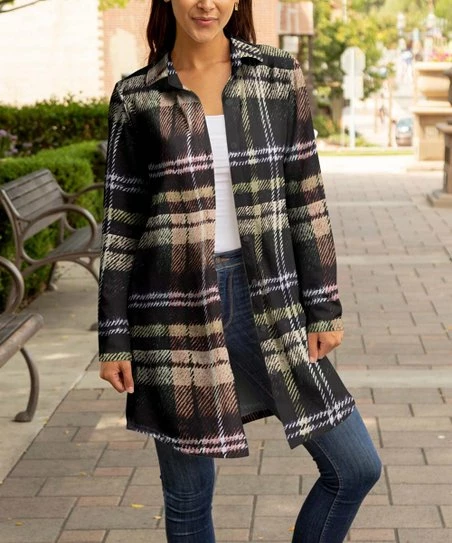 Go for a layered look in this longline shacket featuring a collar and buttoned front.