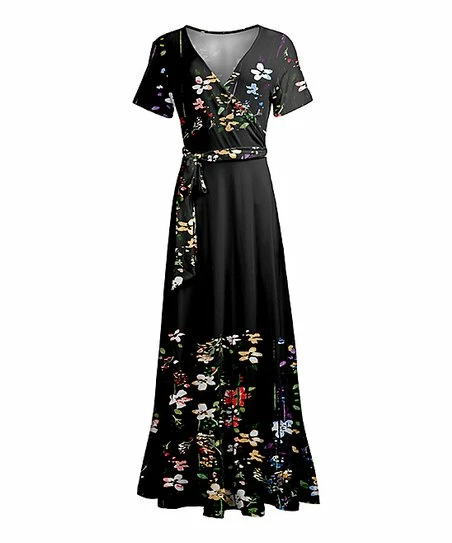 Flowing lines and a breathable stretch blend lend figure-flattering appeal to this floor-skimming dress elevated by a collarbone-accentuating neckline.