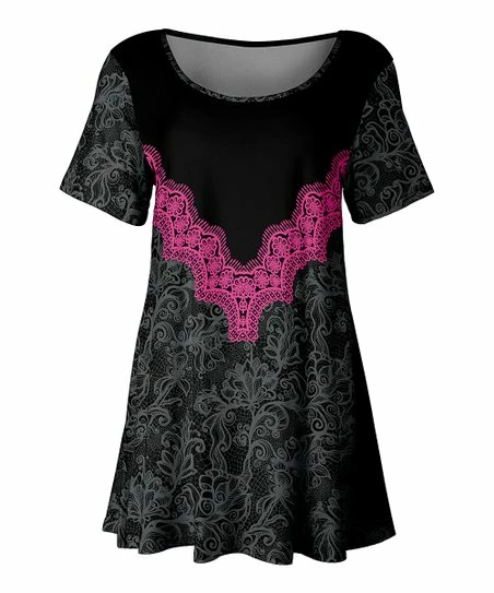 Dance through the day when you don the lighthearted print showcased on this tunic offering a loose-fitting hem and comfy construction to add breezy style to your ensemble.