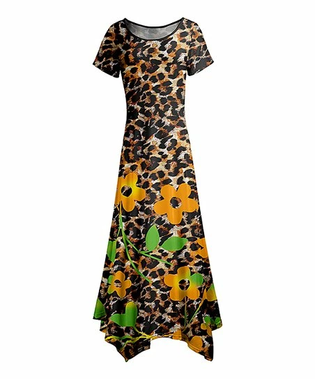 Get ready for your next occasion when you reach for this short-sleeve maxi dress adorned with a scoop neckline that awaits your favorite accessory. The handkerchief hem provides a flowy finish.