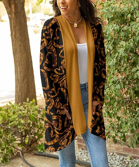 Lily | Black & Gold Hearts Shawl-Collar Open Cardigan – Plus