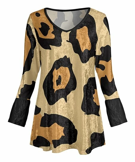 Effortlessly elevate your ensembles with this velvet tunic that features a statement-making print and subtle bell-sleeve cuffs.