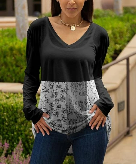 Pair this stretchy v-neck tunic with your favorite pair of skinnies and wedges to keep yourself comfortably chic as you head out for a night on the town.