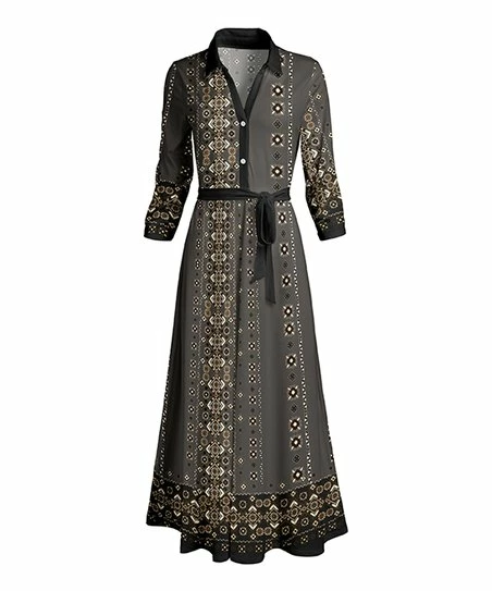 This maxi shirt dress shows off a poised collar and button placket. Long sleeves and a self-tie belt lend versatility.