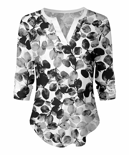 Add monochrome style to your everyday looks with this ultrasoft top boasting a sweet notch neckline and stretch-enhanced fabric for added comfort.