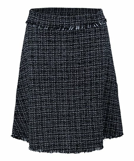 An unfinished fringe and retro plaid give this A-line skirt a classic vibe.