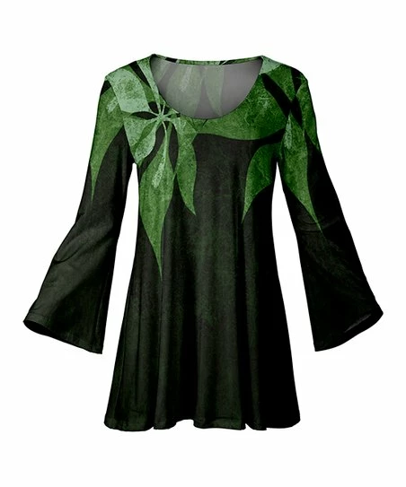 A nature-inspired motif lends a whimsical touch to this tunic, and stretch-infused fabric ensures constant comfort.