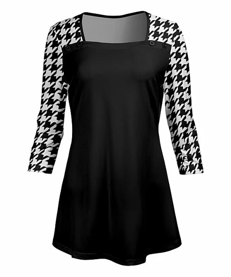 Complete your casual looks with this simply stylish tunic that features a square neckline accented by buttons.