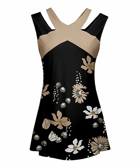 Enhance your warm-weather style with this lightweight sleeveless tunic crafted with flirty cutouts and an eye-catching print.
