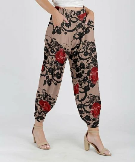 Lily | Black & Mocha Floral Pocket Joggers – Plus