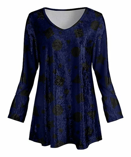 Velvet fabric offers a delightfully soft feel and an interest-sparking texture in this patterned tunic made with a flattering neckline and warm sleeves.