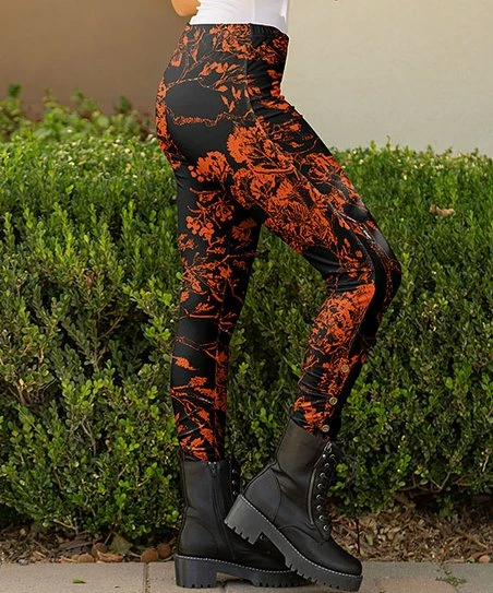 Leggings featuring a side-button design on the lower leg and stretch-enhanced fabric.
