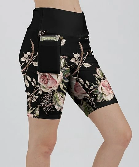 Update your activewear with these stretchy bike shorts showcasing a visually interesting motif and convenient front pocket to keep your device at hand while you work up a sweat.