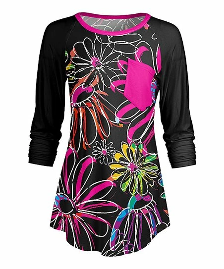 Infuse a hint of stretch into your ensemble with this boldly printed tunic featuring a front pocket for an added fashion oompf.