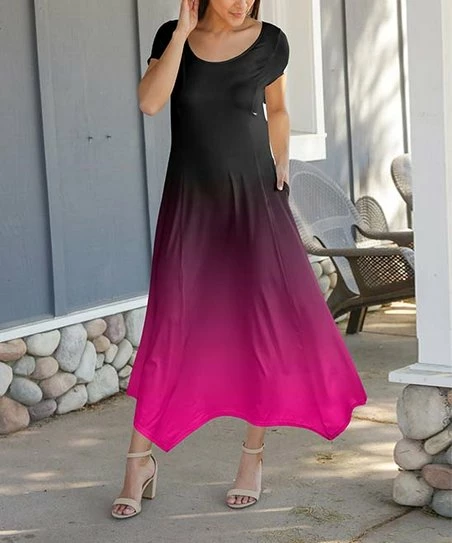 A bold print gets extra excitement when it’s paired with this maxi dress featuring a flowy handkerchief hemline and enough stretch for all-day comfort.
