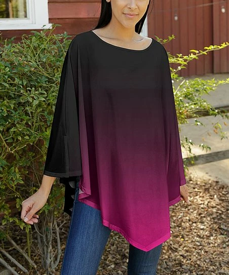 Top off your look with this flowing tunic featuring a triangle hem and boatneck.