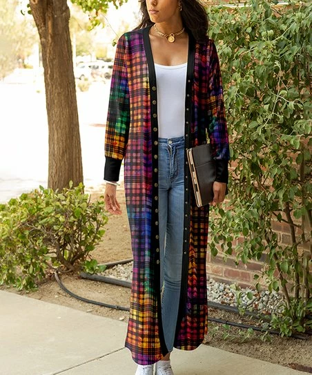 Add a chic layer to your ensemble with this stretch-infused duster wearing a bold print.