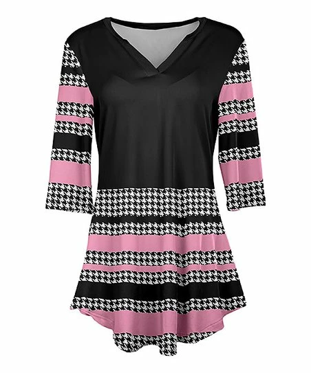 Boasting a charming print and made with a stretch-enhanced fabric, this breezy, v-neck tunic can easily be the eye-catching centerpiece for any of your ensembles.