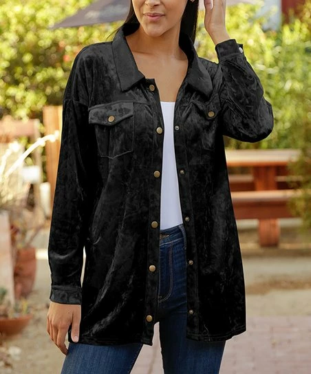 Button-up jacket featuring a velvety texture and protective collar. Button-up flap pocket .