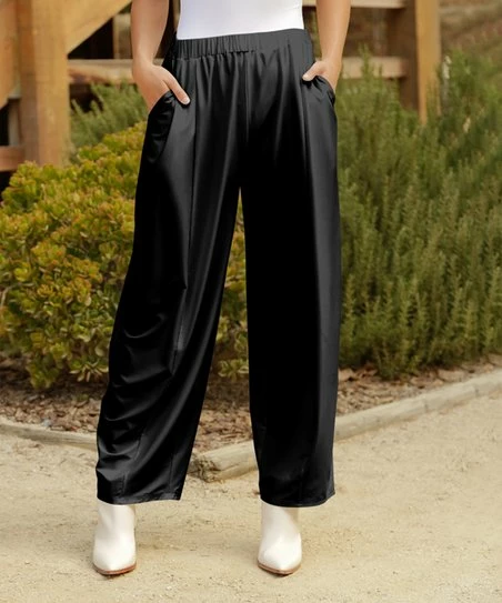 Flowy wide-leg pants featuring a solid hue and handy side pockets.