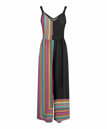 Jumpsuit featuring a v-neck collar and a flowy wide-leg design.