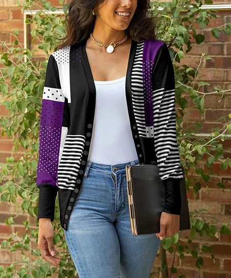 Layer in chic style with this cardigan that features an eye-catching geometric motif. Its stretch-enhanced blend keeps you comfortable all day long.