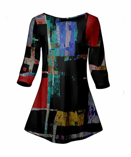 Enjoy a statement style in this silky tunic featuring flattering three-quarter sleeves and a round hemline.