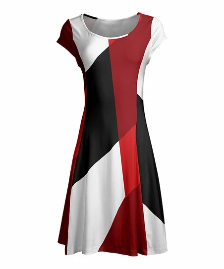 Lily | Black & Red Abstract Cap-Sleeve Dress – Women & Plus