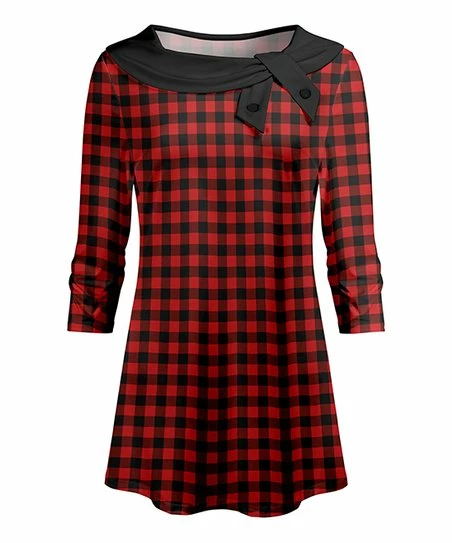 Draw second glances in this contemporary tunic flaunting a bold pattern and flattering fit. A twist at the neckline finishes your look with touch of preppy charm.