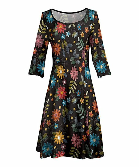 Make a statement in this swingy A-line dress designed with a boatneck, three-quarter sleeves and a vibrant print.