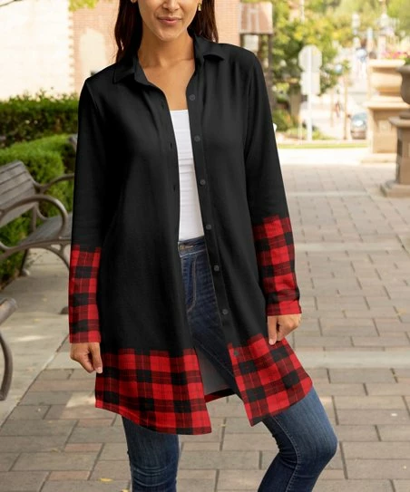 Add a pop of print to your look with this longline shacket featuring a button-up closure and crisp collar.