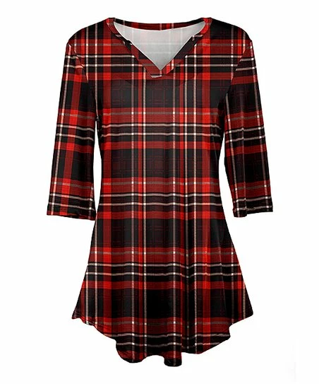Spice up gray days in this tunic that features a bold pattern. Three-quarter sleeves and lightweight fabric make it just right for in-between weather.