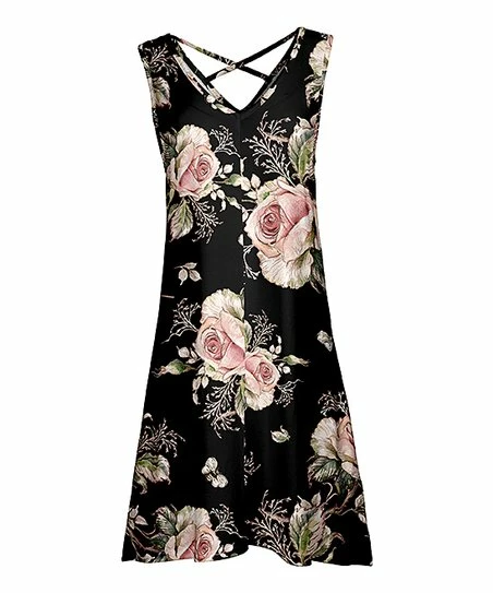 Easily dressed down for daytime events or dressed up with heels for the evening, this floral sleeveless dress features a swingy A-line fit and a v-neck with crisscrossing straps at the back.