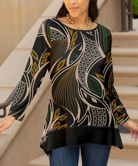 Top off jeans or leggings with this boatneck tunic framed with long sleeves.